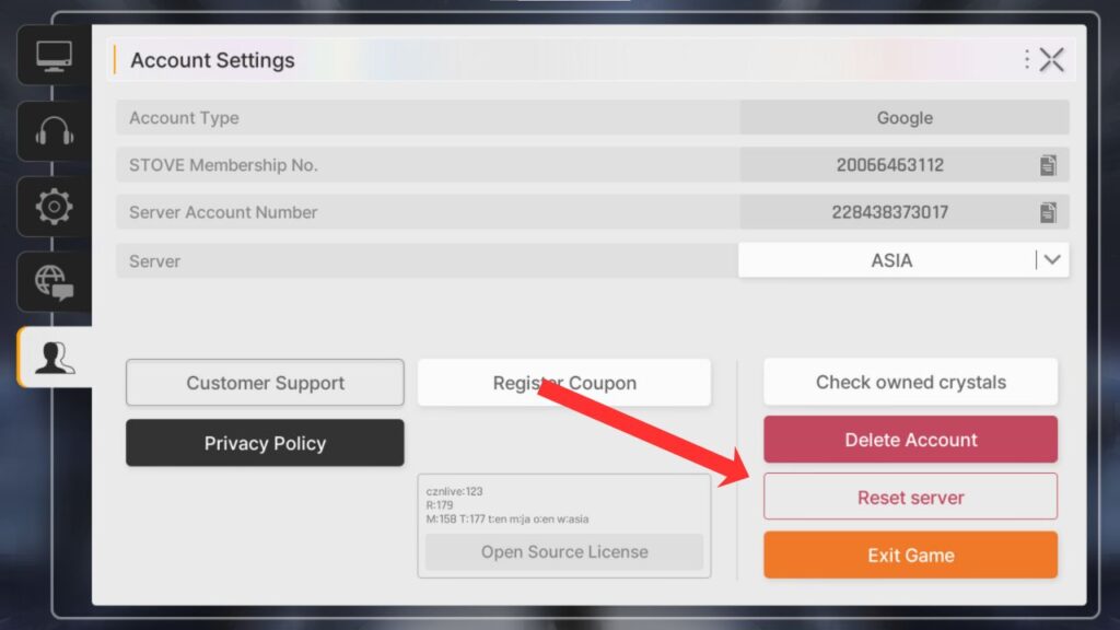 Step 9: Not happy with your pulls? No problem. Tap the three horizontal lines again, select the gear icon at the bottom right, then click the person icon on the middle left. Hit Reset Server to delete your data without making a new account.