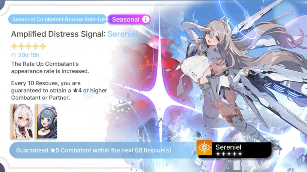 You can get Sereniel by pulling her in the limited Seasonal Combatant Rescue banner, Amplified Distress Signal: Sereniel. Seasonal characters will not be included in the standard recruitment pool after the banner ends. However, they might be re-released in the future.